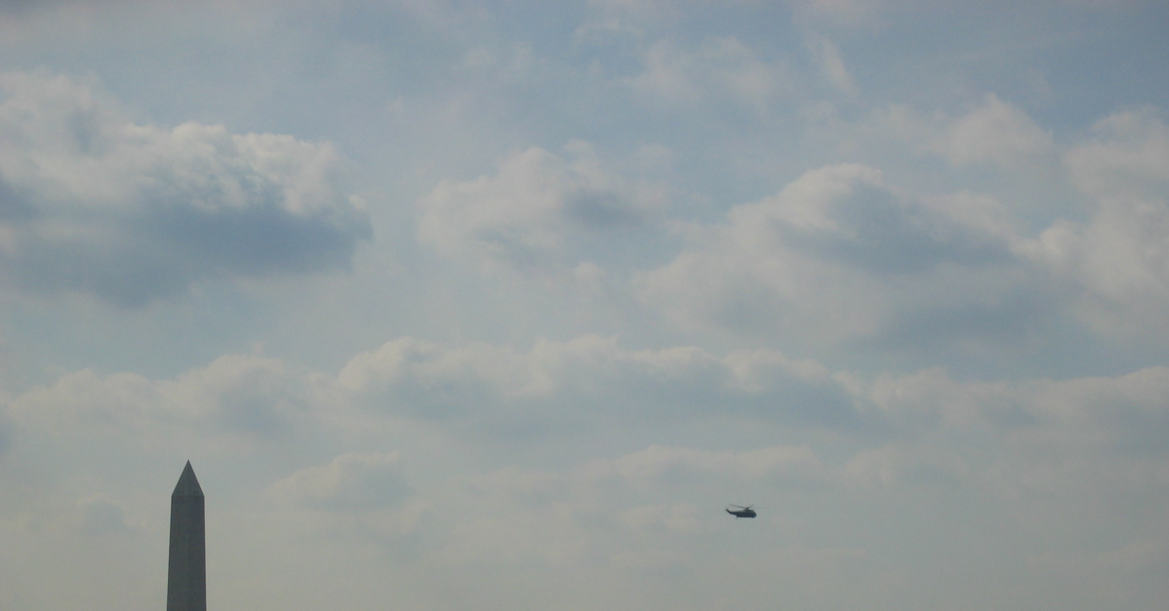 We were fortunate enough to snap this pic of Executive One as it flew over the city on its way to Andrew’s AFB. Next up is the Inaugural Parade which is scheduled to start at 2:30pm on Penn Ave, but we think things are running a bit behind schedule.