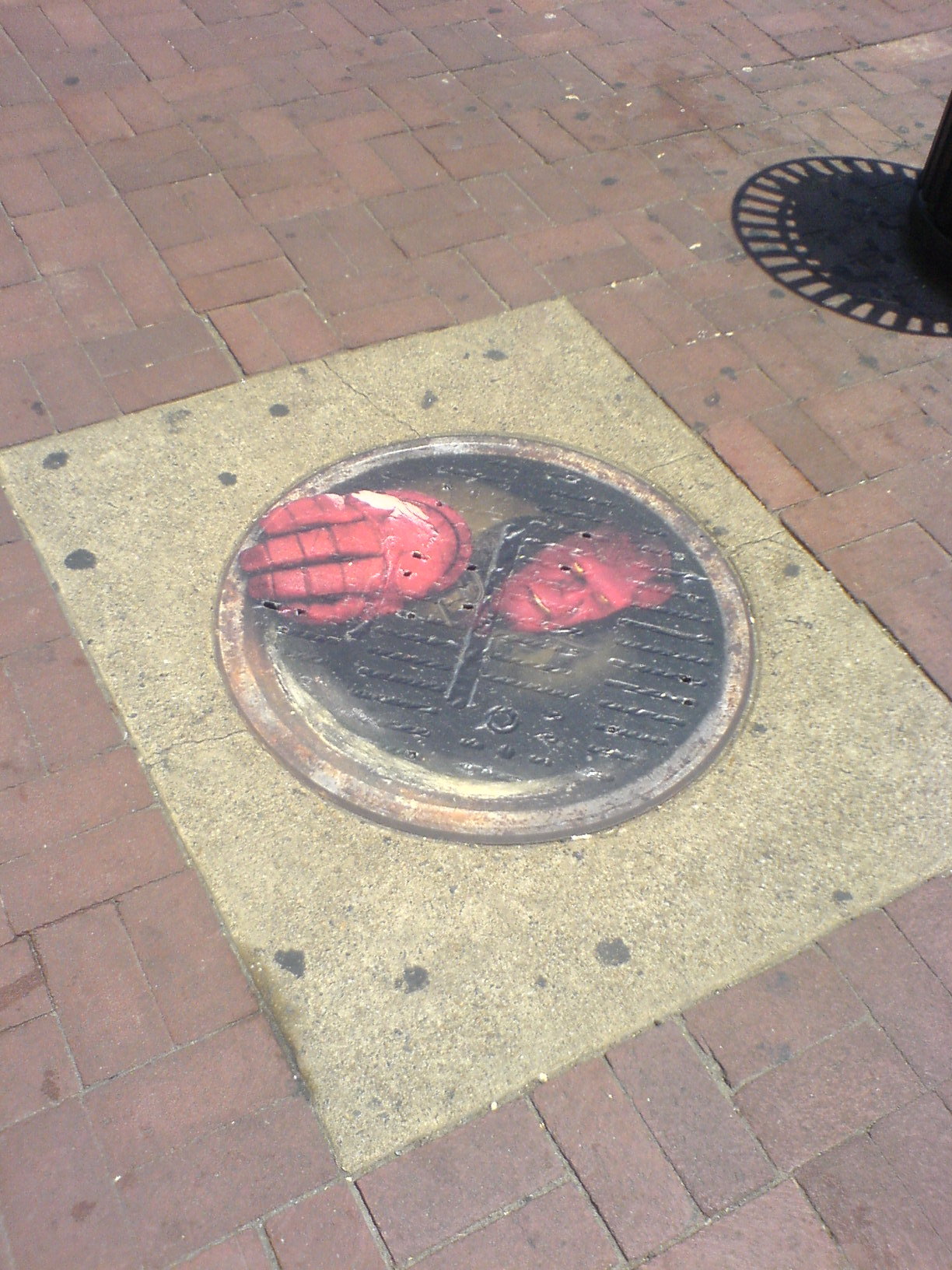 We have to say that this is one of the more creative sidewalk ads we’ve seen in a while. In fact, most people miss it when walking by. These circular ads have been adhered to the tops of man-hole covers around the 7th & H St NW intersection. The fact that the ads are subtle and don’t contain obnoxious text or colors have made us fans of this particular ad style.