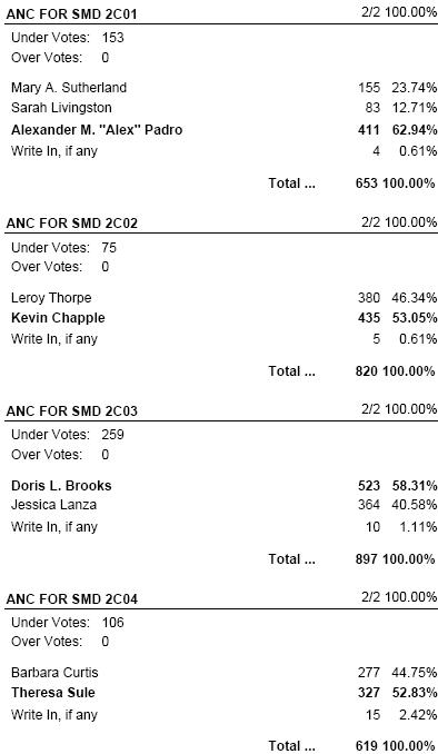 What I find most disappointing are the 259 under votes, which means that 259 people in 2C03 left the ANC portion of their ballot blank.