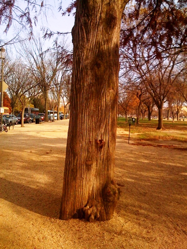 aargh, that tree! Yesterday there were a bunch of puddles around it, and the usual tourists with their haphazard guidance systems. It’s not so bad though. Dodging all the obstacles on a Mall run is half the fun.