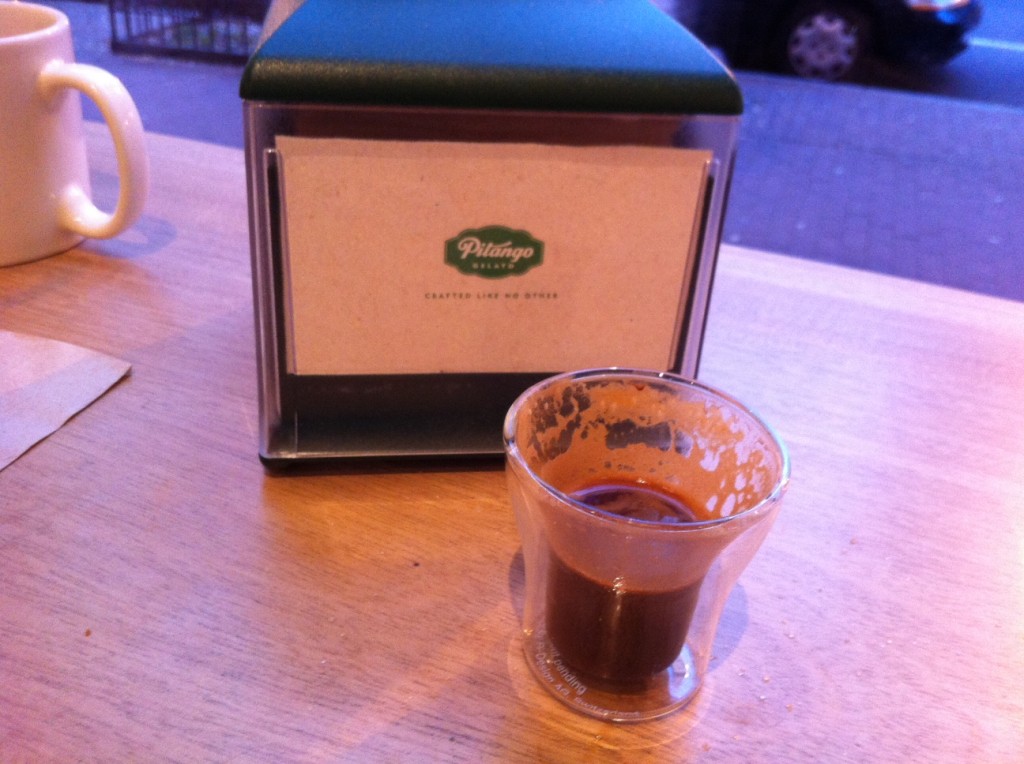 DC has nothing quite like Zibetto, but we have been favorably impressed with the coffees and espresso-bar-like atmosphere of Pitango Gelato (413 7th St NW).   We’ve written about Pitango before (specifically about our love of their biscotti) but we find ourselves stopping by more to have an espresso, capuccino, or sometimes a marrochino (equal parts hot chocolate & espresso).  The drinks themselves are outstanding, possibly the best espresso-based beverages we’ve had in DC, but it is the atmosphere that keeps us coming back (and the friendly service).  When the hour or weather means fewer crowds waiting for gelato, Pitango takes on an almost Zibetto-like vibe.  It is not the same as our beloved NYC coffee bar, but it is pretty close and reminds us how lucky we are to have Pitango in our neighborhood.
