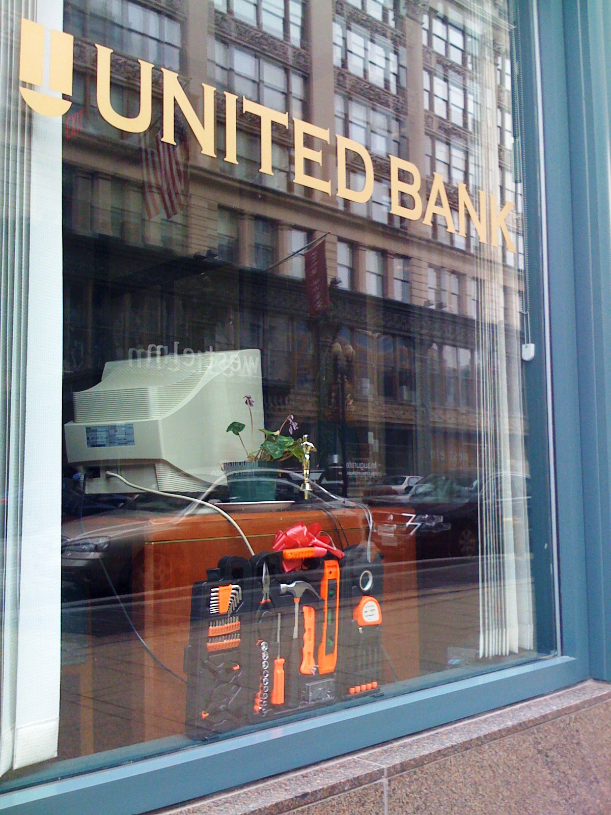 We’ve probably walked by the United Bank at 1001 G ST NW thousands of times. We’ve certainly noticed the gifts in the windows hundreds of times. And yet it was only recently that we put two and two together to figure out that they were displaying the free gifts they’ll give you when you open an account at the bank.